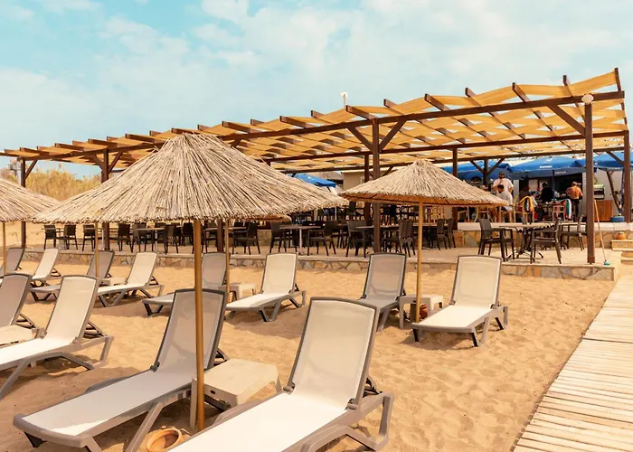 Dieses hotel bietet Gästezimmer mit Blick aufs Meer. Das Hotel verfügt über Zimmer mit komfortablen Möbeln.